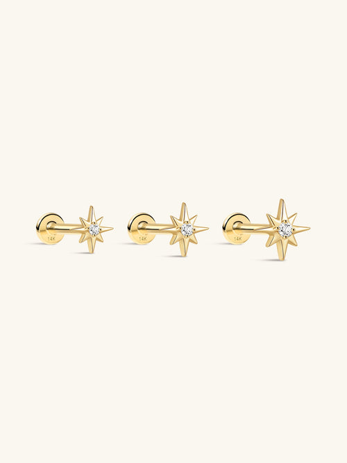 14K Solid Gold Dazzling Star Flare Ear Studs -