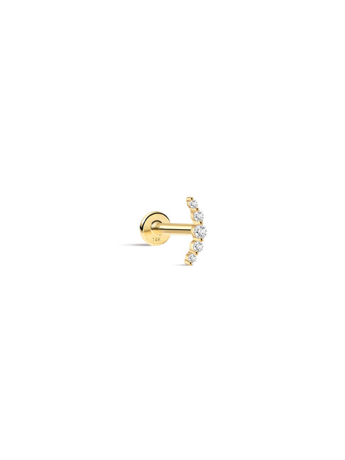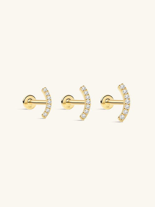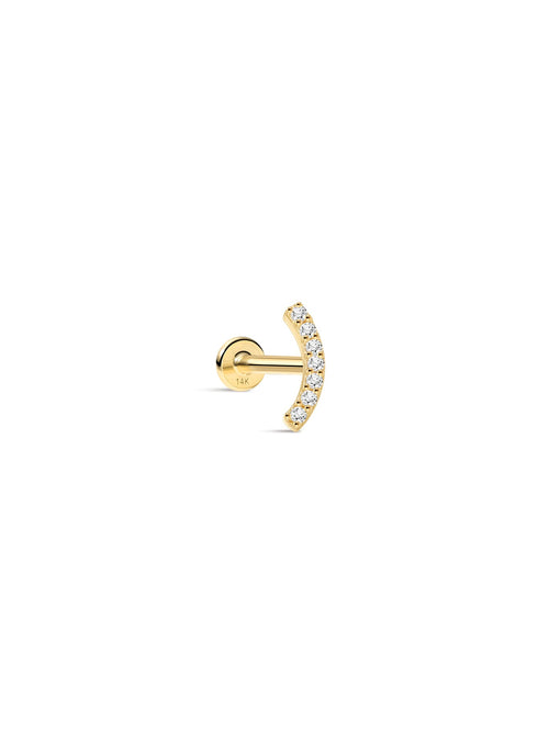 14K Solid Gold Pave Curved Ear Stud for Piercing -